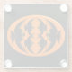 This awesome glass coaster features an orange oval with six crows in it. Each crow has yellow eyes with black pupils and outstretched wings. The crows are flying towards each other forming an oval shape. The background is black.