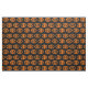 This awesome craft fabric is perfect for all your craft projects. The design features an orange oval with six crows in it. Each crow has yellow eyes with black pupils and outstretched wings. The crows are flying towards each other forming an oval shape. The background is black.