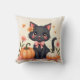 Add a touch of seasonal charm to your home with this adorable black cat Halloween cushion. Featuring a sweet, wide-eyed black cat with rosy cheeks, a pink bow, and a dainty floral crown, this design is perfect for bringing a cozy, whimsical vibe to your space. Surrounded by pastel pumpkins and soft autumn flowers, this pillow blends festive spirit with stylish décor.