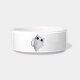 This is a heavy, durable bowl decorated with Tibbies of many colors, the perfect size for hungry/thirsty Tibs. The design is interesting and printing clear.