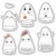 Halloween cute kawaii ghost custom cut vinyl stickers with a funny phrase at the bottom.