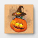 Halloween Cute Kitty Witch and Pumpkin Friend Plaque