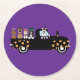 Halloween Dogs In A Pickup Truck Round Paper Coaster