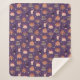 Fun and whimsical halloween theme blanket featuring hand drawn illustration of dogs in costumes. The background is purple.