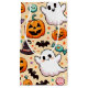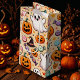Halloween ghosts, jack-o-lanterns, bats and candy.
