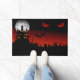 Halloween doormat is shown with a spooky haunting scene print.