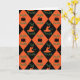 Halloween orange, black, and green harlequin pattern. This pattern has the quote from Macbeth, "Double, double, toil and trouble," along with images of cauldrons and witch's hats. Great for quirky Halloween invitations and greetings! Double, Double, Toil and Trouble Harlequin Design © 2019 Regina Blankenship.