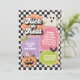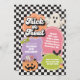 Éffrayant Vibes halloween invitation d'anniversaire avec fantôme, bonbons, chauves-souris et vérificateur arrière - plan.