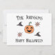 This is a cute, personalized Halloween design. It has trending, Halloween motifs and the message "Happy Halloween" and space for you to add your family name. It's perfect for your halloween card giving, and ideal for halloween parties or celebrations. To add your name simply type it into the personalize this text box. To change the colour or font check out the design editing tool. For help with personalization, matching products, or for a custom design, contact me via email: ursuladawnmoon@gmail.com