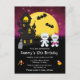 This fun and spooky birthday invitation features cute mummies beside a crooked haunted house. In the background is a full moon with bats and a pink night sky with stars. The text combines decorative and serif fonts for a stylish and modern look. This is perfect for Halloween.