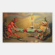 Beautiful vintage stickers featuring a devil and a pumpkin character trying to open a firecracker.
