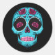 Personalize your stickers by adding your name or any text that you choose. The Halloween sugar skull with a moon glow background.