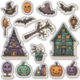 These folkart style Halloween stickers have a fun purple, orange, and emerald colour palette. There are 16 stickers in total with a mixture of spooky houses, flying creatures, creepy plants, and jack-o-lanterns. Use them to decorate a notebook or planner. You can even use them on water bottles, because they're waterproof.