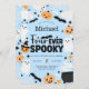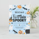Get ready for a frightfully fun celebration with this adorable “Four Ever Spooky” 4th birthday invitation! Featuring playful ghosts, pumpkins, spider webs, candy corn, and bones, this cute and festive design is perfect for your little one's Halloween-themed birthday bash.