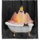 Give your bathroom some Halloween fun with this cute shower curtain featuring a ghost in a bubble bath with his yellow duck and black cat. The black smoky background with bats will set the mood for happy Halloween decor.