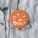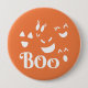 Creatively designed for a fun Halloween button pin with hand-drawn ghost face elements.