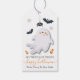 Modern and cute "Little Boo" Halloween Baby Shower gift tags. Features a friendly ghoss, rainbow, clouds, stars, moon, witch hat, bat, pumpkin and spider. Colour scheme of orange, grey, black and white for a girl or boy baby to be. Perfect for a baby shower near Halloween, day of the dead or October.