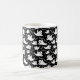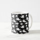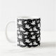 This coffee mug is shown in black and white with a Halloween ghost print design.