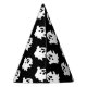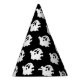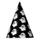 This party hat is shown in a black colour with a Halloween ghost print.