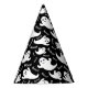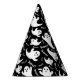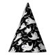 This party hat is shown in a black colour with a Halloween ghost print.