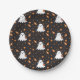 Some fun Halloween black paper plates with a cartoon ghost pattern .