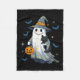 Halloween Ghost Witch Holding Black Cat Funny Hall Fleece Blanket