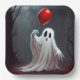 Halloween Ghost With Red Balloon Paper Plate
