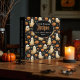 Celebrate spooky season in style with this festive recipe binder featuring a playful pattern of smiling ghosts and glowing jack-o’-lantern pumpkins against a dark background. The gothic-style “Recipes” title on the front cover adds a classic Halloween touch, making this binder perfect for organizing fall baking recipes, Halloween party menus, or year-round family favourites. Customize it as your own cookbook or give it as a fun seasonal gift.