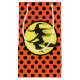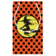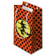 Halloween gift bag shown with a festive black and orange polka dots witch print.