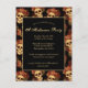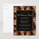 This gothic Halloween invitation postcard features a pattern of creepy skulls floating in a black abyss behind your invite. Each spooky skull is adorned with red roses. Their empty soulless eyes are contrasted sharply against the goth rose crown and bouquets of dead flowers.