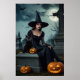 Create an unforgettable Halloween vibe with this mesmerizing gothic-style poster. A mysterious witch in a Victorian gown sits among glowing pumpkins and gravestones, beneath a cloud-veiled full moon. With bats flying overhead, this eerie masterpiece will add the perfect touch of dark elegance to your space, making any room truly spooktacular! © 2024 Tan Choon Hong. All rights reserved.