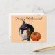 Adorable postcard features a guinea pig wearing a witch's hat and standing guard with a pumpkin! With the "Happy Halloween" message this is a great postcard to send to guinea pig and Halloween lovers too.