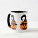 Ce joyeux Jack-o-Lantern est prêt pour All Hallows Eve ou toute journée d'automne confortable ... et un peu de cacao chaud!