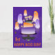 Halloween Happy 1st Boo Day! A couple of spiders drop in and a cute group of ghosts surround a birthday cake with lighted candles and a hanging black bat to celebrate an October 31st birthday on Halloween. All in bright Halloween purple and orange. Text is completely customizable, change it to whatever you want it to say.
