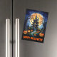 Send spooky smiles with this whimsical Halloween magnetic card, featuring a haunted house on a hill and glowing pumpkins in the foreground. The dark night sky with moon and twisted trees creates a haunting atmosphere, beautifully made in a watercolor and pencil style. On the front, the design includes the customizable text “Happy Halloween”, or you can personalize it with your own message. Spooky yet adorable, it’s a charming way to share the Halloween spirit. Perfect for haunted house lovers, pumpkin fans, and anyone who enjoys spooky Halloween cards.