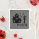 Halloween Haunted House With Bats And Tree On Grey Napkin