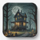 Halloween Haunted House With Jack-o-lanterns Paper Plate