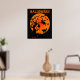 Halloween Haunted Place Poster. Cool poster in black and orange featuring a haunted place. A spooky tree with an owl, a witch on a broomstick, bats, a black cat and Jack o Lanterns compose this image of a Haunted place.