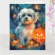 Get your furry friend ready for a howling good time with this adorable dog-inspired Halloween design! Featuring a spooky dog with pumpkins, this design is perfect for pet parents who want to include their four-legged family