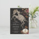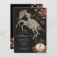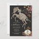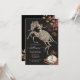 Elegant Classic Art floral botanical Halloween Horse arrangement against a black background. Features the headless horseman's horse wrapped in gauze bandages with skeleton. Creep cool and not for the faint of heart! Great for any halloween party or even a dark wedding or day of the dead celebration.