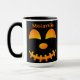 Adorable Halloween mug featuring a cute jack-o'-lantern face with customizable name.
