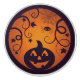 Happy Halloween circle badge with jack-o'-lantern smiling pumpkin