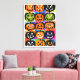 Step into the enchanting world of Halloween with "Expressive Jack-O'-Lanterns." This delightful image features a grid of twelve mischievous pumpkins, each wearing a unique expression, from cheerful and sad to angry and surprised. They stand boldly against a vibrant rainbow gradient backdrop, with each square adorned in a different colour. This enchanting artwork captures the essence of Halloween's playful spirit, making it the perfect addition to your seasonal decor