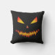 Halloween Jack O'Lantern face cool scary evil Pillow. Evil looking orange and yellow burning Pumpkin face on custom black.