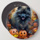 Halloween Keeshond With Pumpkins Scary 6 Inch Round Button