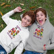 Get ready for a Spooktacular time with our kids’ Halloween Costume Party Hoodie. This beautifully designed Hoodie captures the essence of Halloween with its delightful graphics of kids dressed up as classic characters like witch, werewolf, vampire, Frankenstein’s monster, and pumpkins. The vibrant colours of orange, black and purple create a festive and bewitching atmosphere, setting the perfect tone for a memorable Halloween celebration and getting your guests excited for a fun-filled evening that won’t be forgotten. Text is totally customizable by editing on the product page. To change font styles or colours or resize, use the design tool.