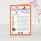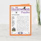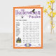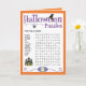 Young children will be excited to get a cute puzzle card with fun activities from you. The puzzle card is decorated with illustrations of a witch's hat, a spider, a haunted house, a mummy head, a broom, a bat, cobwebs, a skull and crossbones, cats, owls, and pumpkins with hats—the perfect activity card for your child, nephew, niece, grandchild, student, or godchild. Colours include charcoal blue, purple sagebrush, purple jam, dark grey, yellow lawn green, banana yellow, and night black. Games included: Find the twelve words, Dot-to-dot, Find the 5 cats, and Pumpkin patch maze. Inside greeting: Happy Halloween! Customize it with your child's name or a greeting. REVIEW: "Great Halloween card with several puzzles for kids to do! The printing of the card was perfect!"