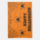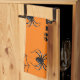 Kitchen towel with image of spiders against orange background for Halloween
