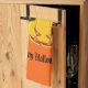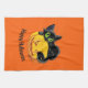 Kitchen towel shown in orange with a cute Halloween black cat on a pumpkin print.