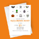 our Halloween Line Icons Party Invitations, a spooky-chic way to invite your friends and family to your Halloween bash. Our unique, hand-drawn line icons add a touch of whimsy to this modern invitation, featuring a witch's cauldron, zombie hand, pumpkin, ghost, tombstone, bat, candy, and skull. Your party details are presented in a clean and easy-to-read format, ensuring your guests receive all the necessary information in a stylish and efficient manner.